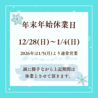 2025年12月28日(日)~2026年1月4日(日) 休業